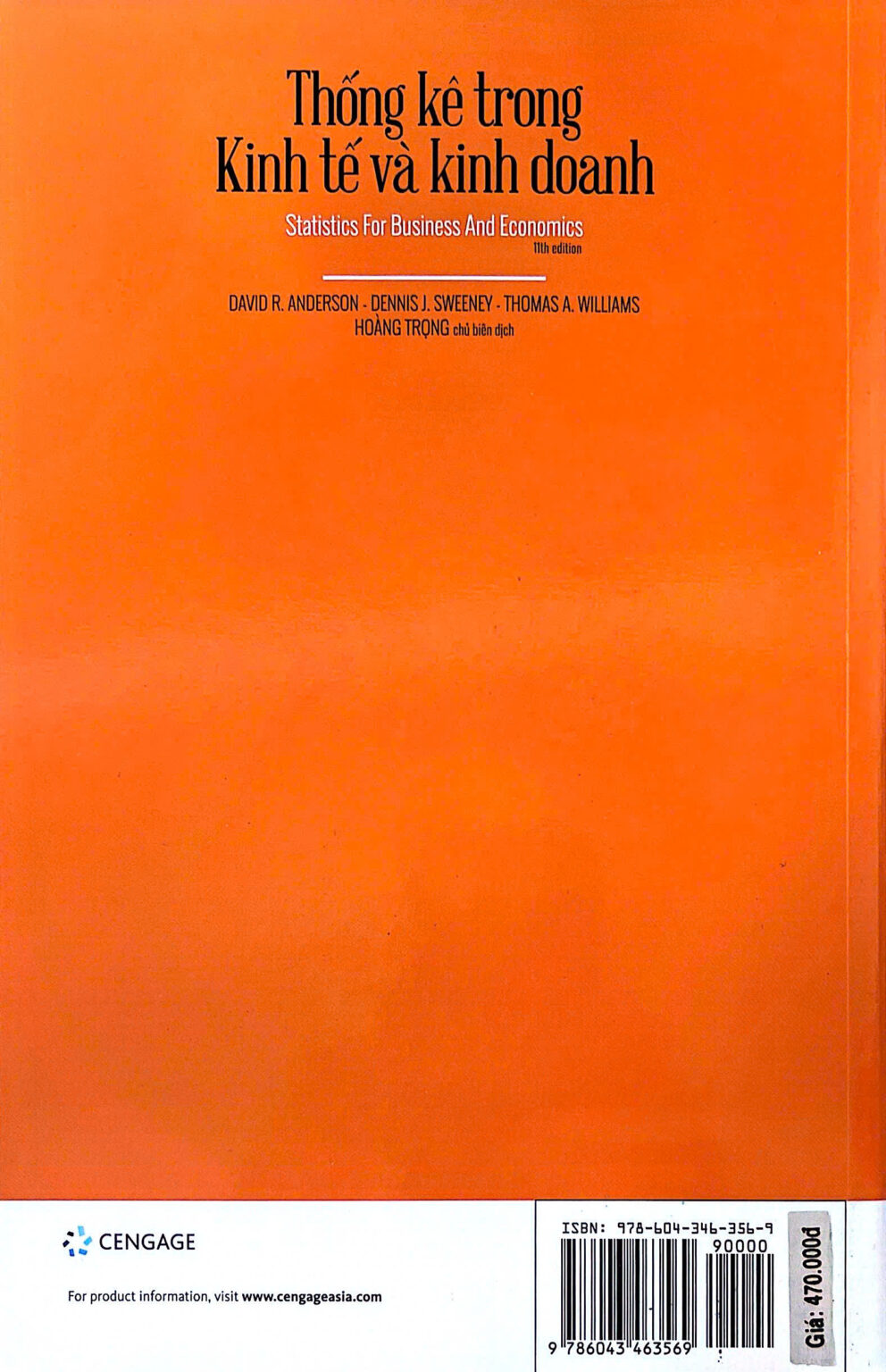 - Thống kê trong Kinh tế và Kinh doanh (Statistics for Business and Economics, 11th edition) của Anderson, Sweeney, Williams – Hoàng Trọng chủ biên dịch – cuốn sách kinh điển giới thiệu các phương pháp thống kê ứng dụng trong kinh tế và kinh doanh.